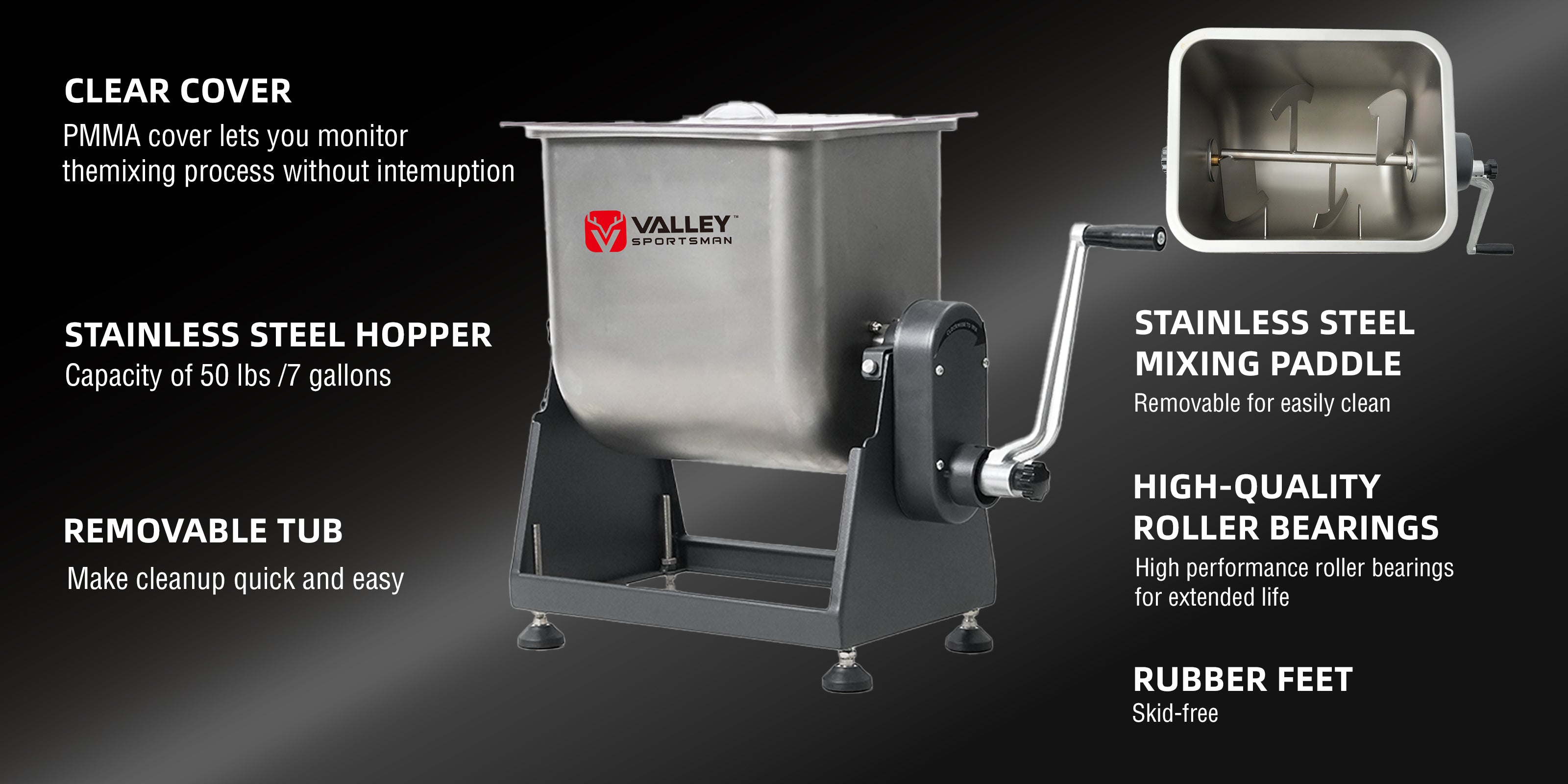 Heavy-duty 50 lb tilting meat mixer with powerful gears, adjustable safety features, and seamless cleaning—built for effortless, professional-grade mixing at home or in commercial kitchens.